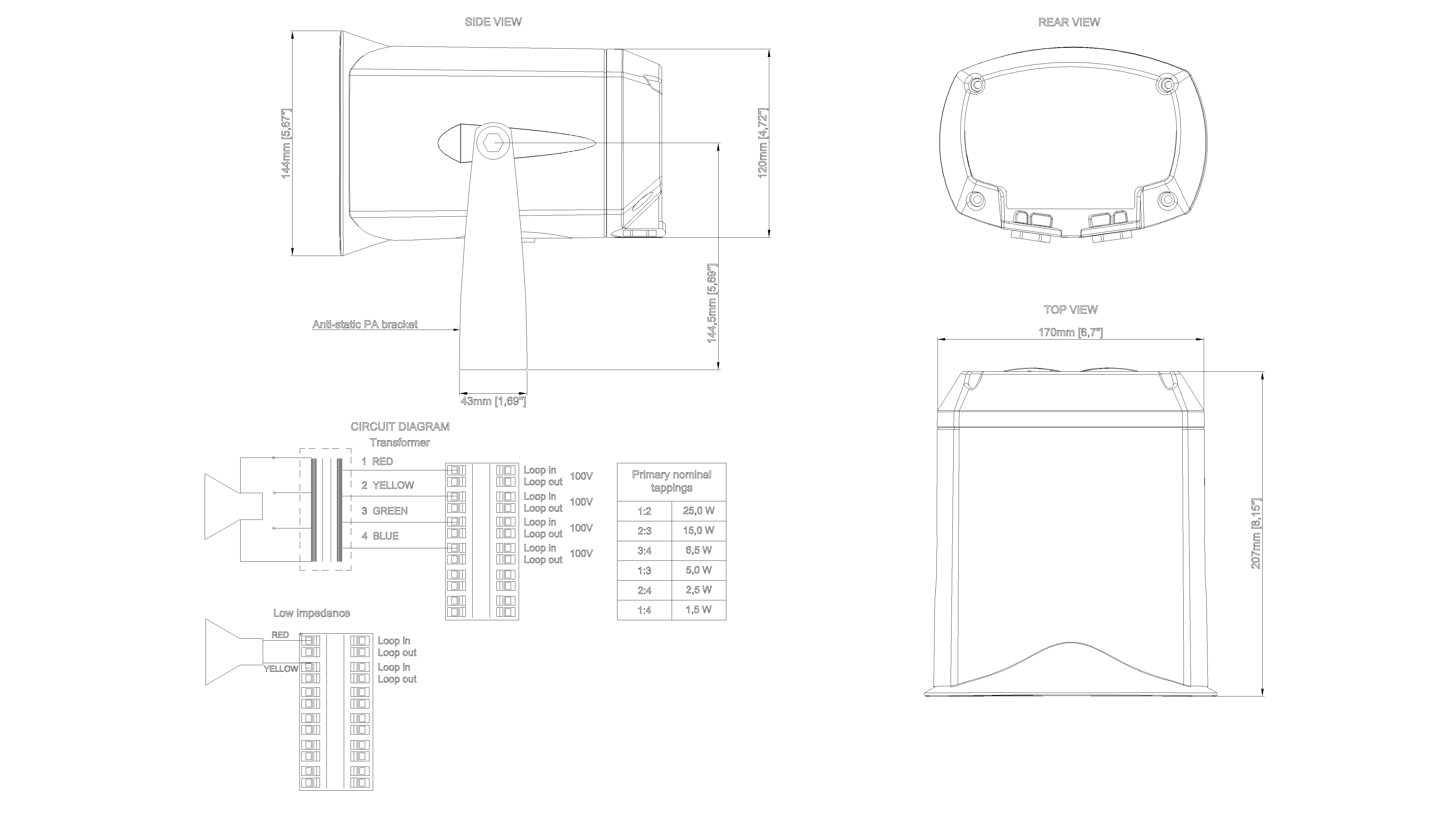 - Tappings: 1.5W - 2.5W - 5W - 6.5W - 15W - 25W